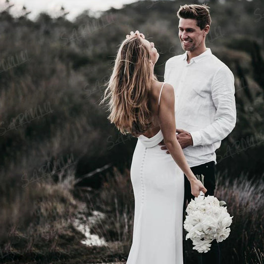 Belle Open Back Draped Satin Sheath Wedding Gown