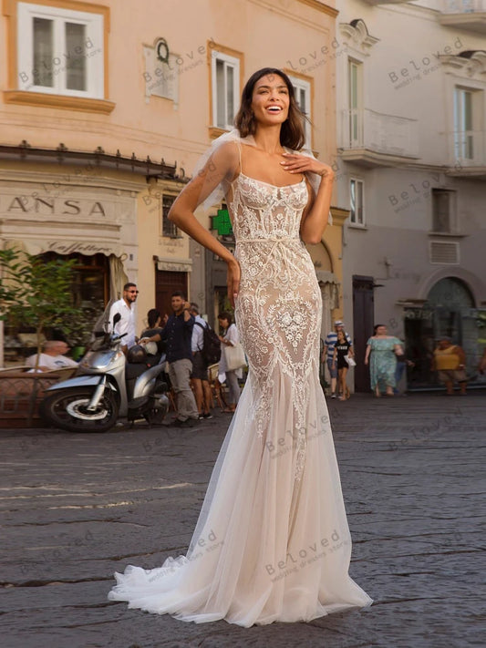 Vintage Sheath Mermaid Lace Applique Brudal Gown