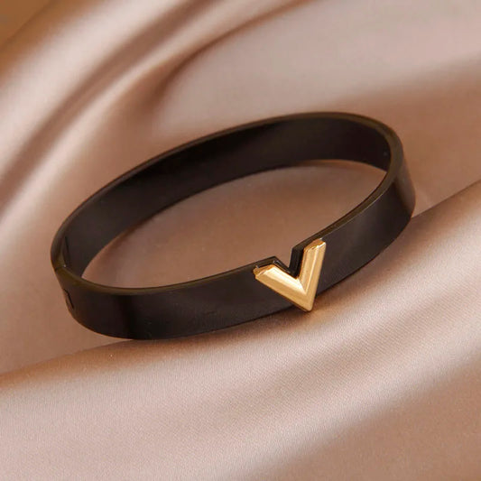 Titanium Steel 18k Gold Color Metal Luxury Bangles