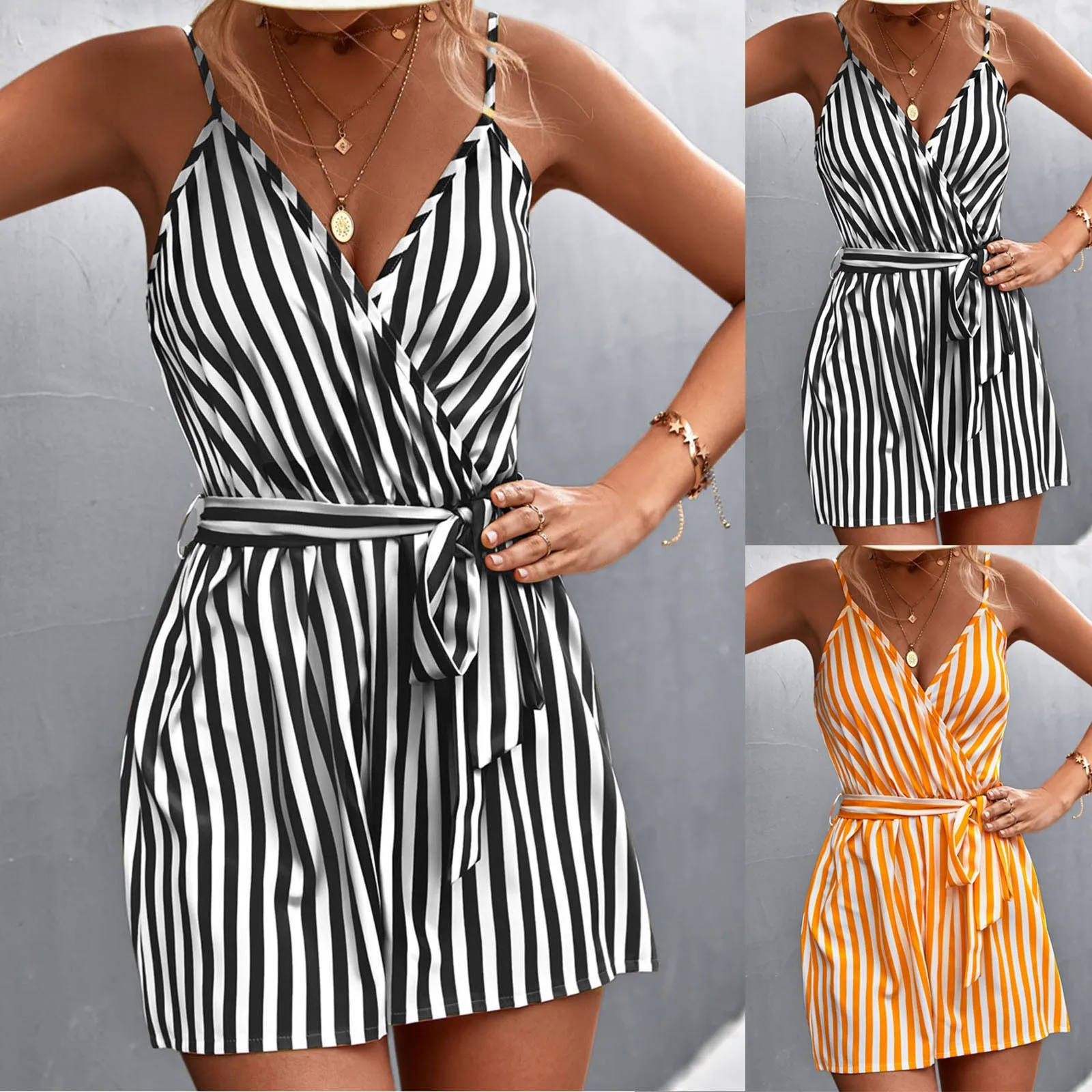 Sleeveless Summer Jumpsuit For Women Casual Stripe Woman Jumpsuit Loose V-Neck Summer Romper Shorts Beach Playsuit Female Outfit