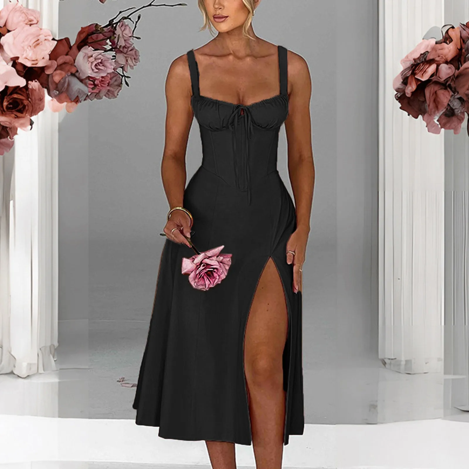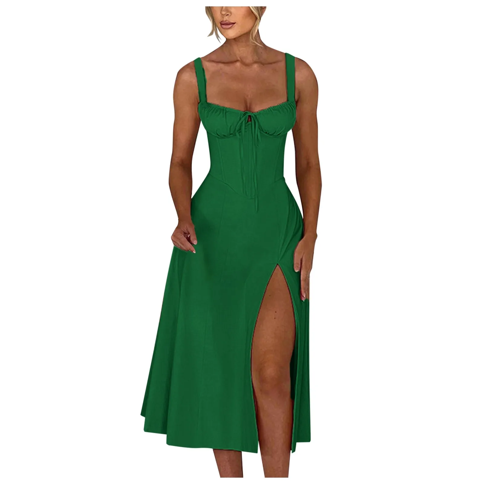 Women Sleeveless Sling Long Dress Summer Solid Color Backless A Line Bandage Dress